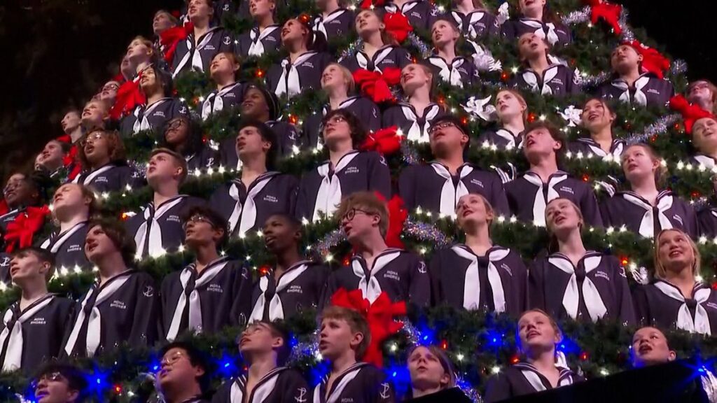 Michigan'daki Mona Shores Şarkı Söyleyen Noel Ağacı 6 metre yüksekliğinde, 25.000 LED ışığa, 1.580 doğrusal fit yeşilliğe sahip ve üzerinde 180 koro üyesinin durduğu 15 kat yüksekliğinde. 40 yaşındaki ağaçta 220 şarkıcı barındırılabiliyor.
